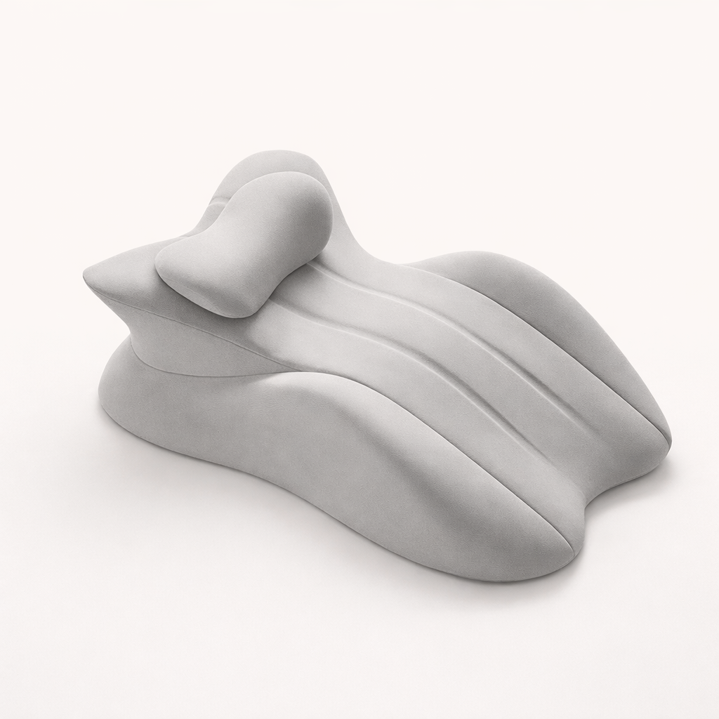Poduszka delikatnie dopasowuje się do kształtu ciała, tworząc stabilne, ale nienarzucające się podparcie. Jej forma pozwala na swobodne ułożenie – na krześle, sofie, pod plecami lub pod biodrami – w zależności od potrzeb chwili. Pianka memory reaguje na nacisk i temperaturę, zapewniając miękkie, równomierne podparcie bez uczucia sztywności.